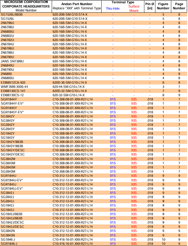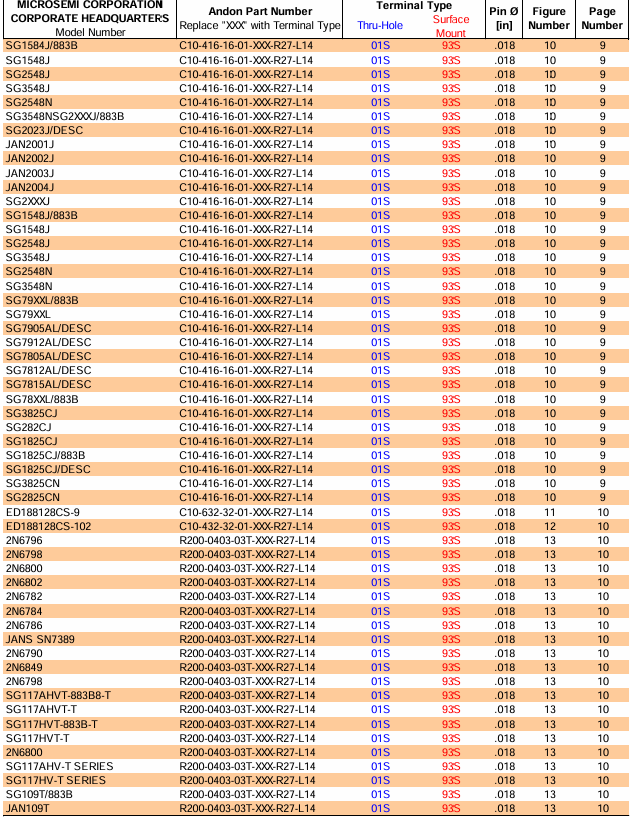 由ANDON Electronics Corporation生產的Microsemi品牌高可靠性轉換器插座。