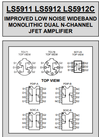 LSJ689系列JFET放大器 低噪聲低電容單芯片雙P溝道