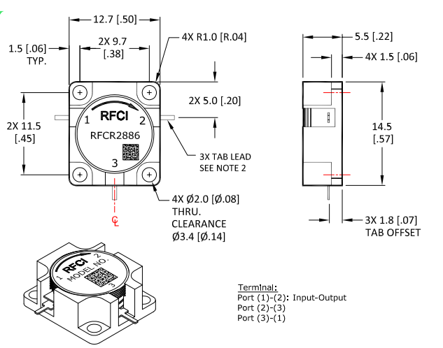RFCR2923 12.7mm孔安裝插入式環形器12-15GHz